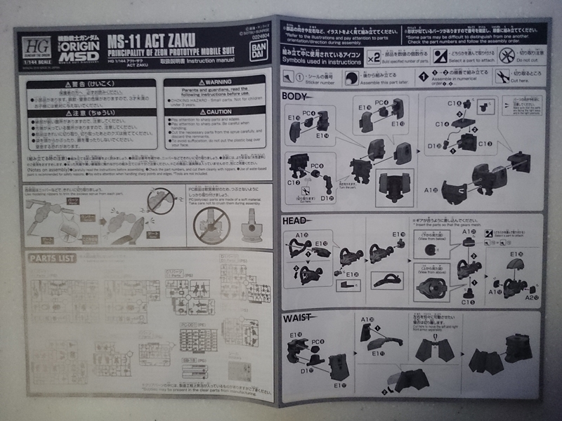 THE ORIGIN系のキットを初めて組むのですが、色分けがかなりパーツ単位で行われているため、色をシールや塗装で補わなければならない部分はほとんどありません。