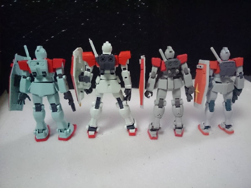 また説明書記載の設定を読むと分かりますが、アドバンスドジンクスをベースにした改造機体という事で、アドバンスドジンクスの特徴であるもも部分の追加バーニアや、肩アーマーパーツの流用などがあって、ノーマルジンクスやジンクスⅢからいくつかパーツを借りてくれば、未発売のアドバンスドジンクスっぽいものが作れるかもしれません。