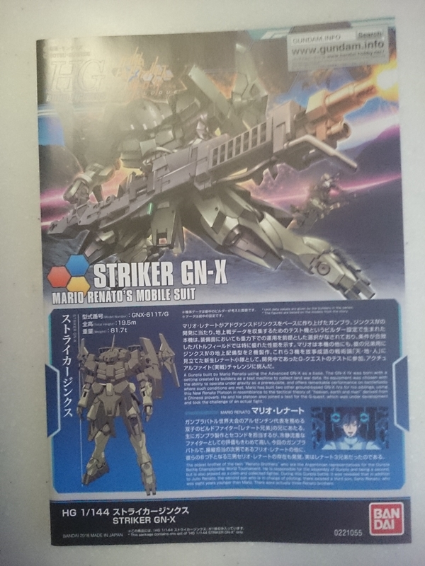 続いて、HGBF 1/144 ストライカージンクスですが、ちょっと写真多めにしてみました。