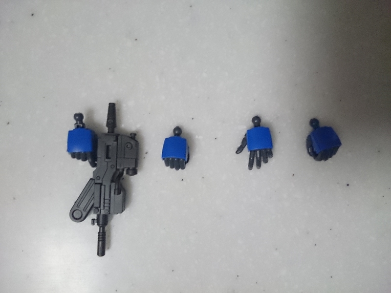 ハンドパーツは右が銃持ち手、持ち手、左が持ち手と平手と、一般的な構成ですが、ガトリングガンも含めて銃が2つあるので、左の銃持ち手があればうれしかったところです。