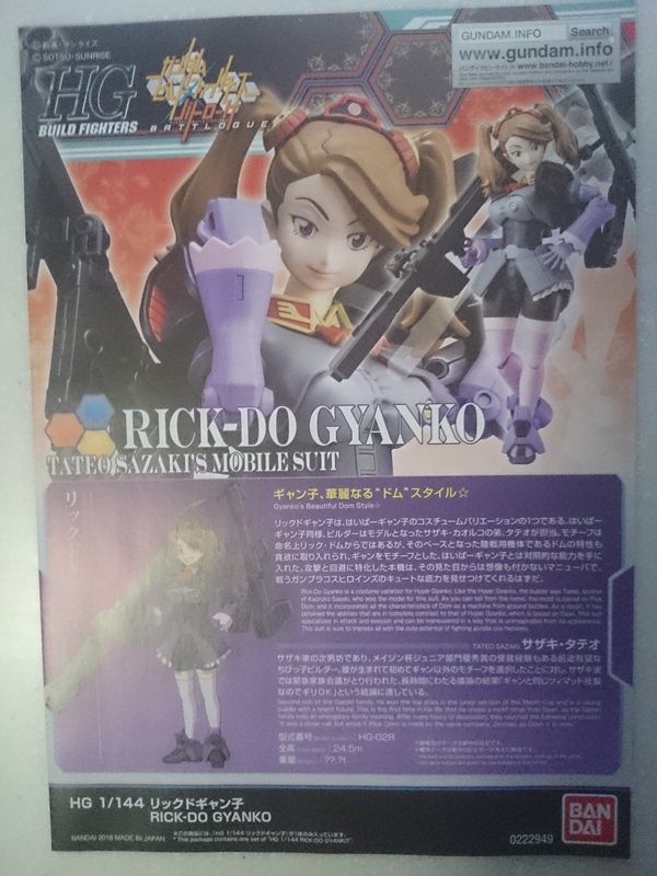 大部分ははいぱーギャン子の流用で、装甲部分などがドムモチーフの物に差し替えられているほか、HGUC ドム/リック・ドムの武器類のランナーが流用されている模様です。(そのためドム系も余剰パーツも出ます)